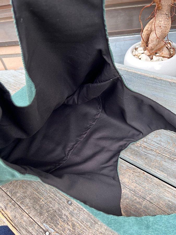 内側には大きめポケットがあり、多めの荷物も入るマチ付き!