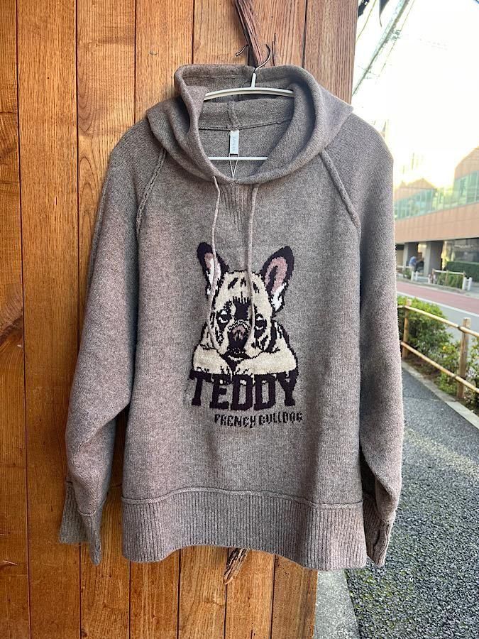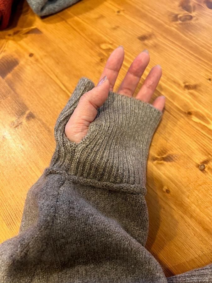 ジャガード編み指ぬきフーディーニット